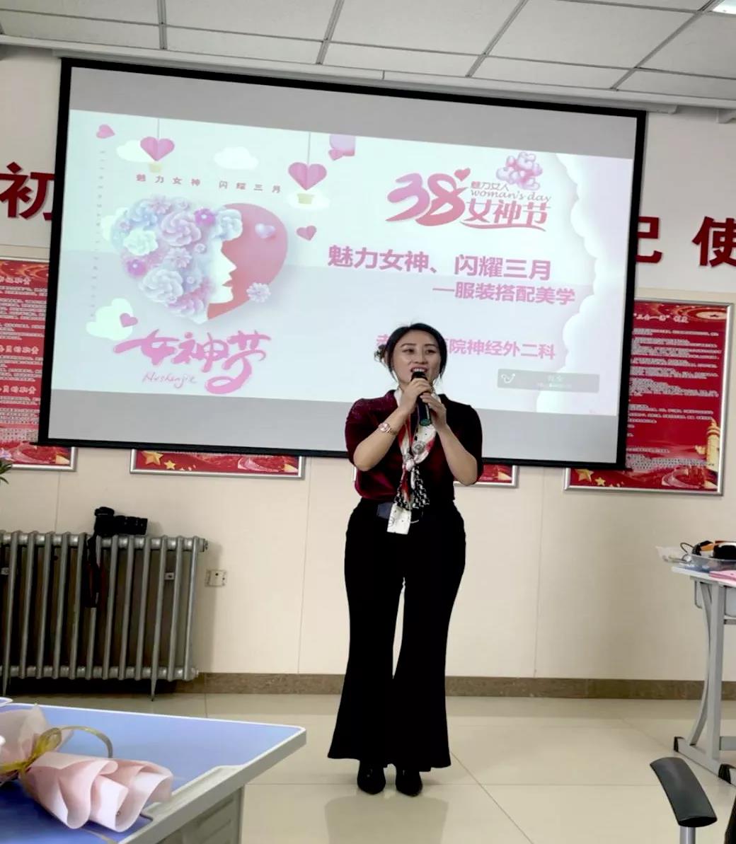阳春三月,人面桃花相映红;“三八”佳节,普天开满美人花!在第111个国际妇女节到来之际,3月8日下午,神经外二科邀请赤峰学院礼仪形象教授于艳梅老师在2号楼9楼活动室举办了“服装搭配美学”的3.8妇女节活动。