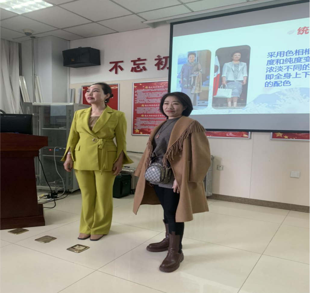 活动中,于艳梅老师为到场的女性分别从人物搭配、物物搭配等方面进行了搭配美学的讲授,并引用了丰富的实际案例,运用理论与实践相结合的方法同现场人员积极互动,针对不同的场合,对各类服装及饰品的搭配进行了专业的讲解。使参与活动的女性都初步了解了适合自己的服装款式、服饰颜色、配饰类型等。整个活动现场气氛活跃,充满欢声笑语。