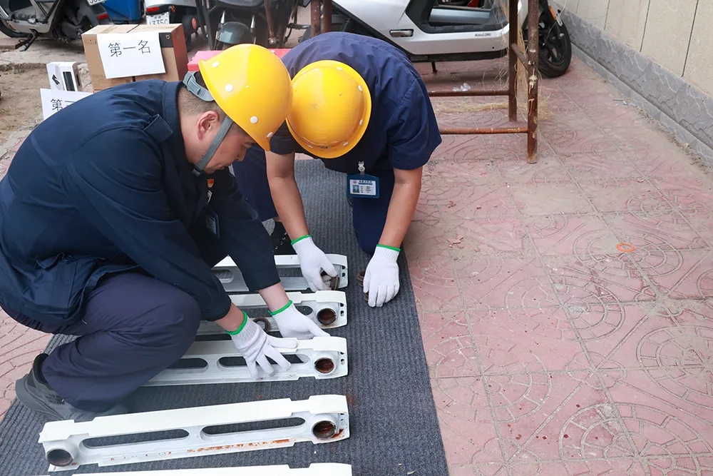 水暖维修组、污水处理班组: 竞赛项目为“暖气散热器安装打压”及“自来水管件连接”。这不仅考验选手安装的精准度与速度,更关键的是检测连接处的密封性,确保无滴漏,直接关乎水资源与热能的节约。比赛中,选手们手法娴熟,测量、切割、套丝、安装、加压检测一气呵成,展现了扎实的基本功和高度的责任心。