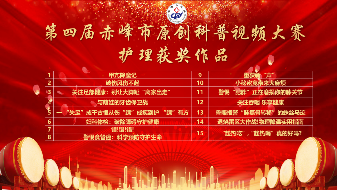 在由市科协、市委宣传部等六部门联合主办的第四届赤峰市原创科普视频大赛中,我院护理团队精心策划、制作的15个科普作品在全市参赛作品中脱颖而出,全部获奖,成绩斐然!这充分体现了我院护理人员在健康知识视觉化、大众化传播上的强大实力与创新活力。