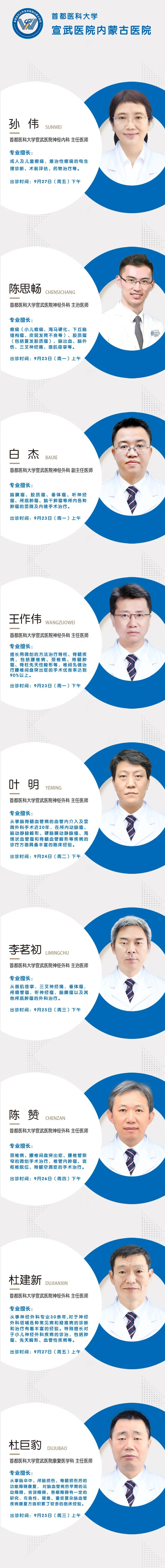 医院自2024年4月揭牌以来,各项工作有条不紊逐步展开。宣武医院已派驻多名专家长期出诊并已成功开展多台高难度手术, 为方便患者提前知晓专家出诊情况,安排诊疗行程,医院微信公众号将定期发布首都医科大学宣武医院内蒙古医院专家出诊时间及信息,请广大患者及时关注专家出诊动态。
