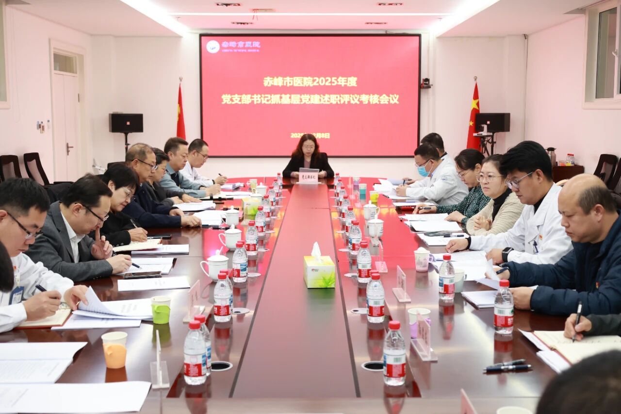 12月8日,赤峰市医院召开2025年度党支部书记抓基层党建工作述职评议考核大会。市卫生健康委员会党组成员、副主任郭小平,市卫健委办公室主任李颖鹤到会指导,医院党委委员、各党支部书记参加会议。会议由医院党委书记张析哲主持。会上,药剂党支部、妇肿泌党支部等党支部书记围绕2025年度抓基层党建工作情况进行现场述职,全面汇报党建工作成效、存在的短板不足及下一步改进方向,其他党支部书记均提交书面述职报告。按照“一述一评”要求,党委书记张析哲对现场述职的党支部书记逐一进行精准点评,与会人员结合述职表现填写《述职评议表》,对各党支部书记履职情况进行民主评议。郭小平对述职情况进行综合点评,既充分肯定各支部党建工作的亮点成效,也针对性指出存在的突出问题,并就后续党建工作推进提出明确要求。会议指出,过去一年,各党支部在抓党建促发展上主动作为,为医院高质量发展提供了坚强组织保障。但从述职汇报和点评情况来看,部分党支部仍存在党建与业务融合深度不足、党员先锋模范作用发挥不够充分等问题,需要靶向施策、持续整改、久久为功。